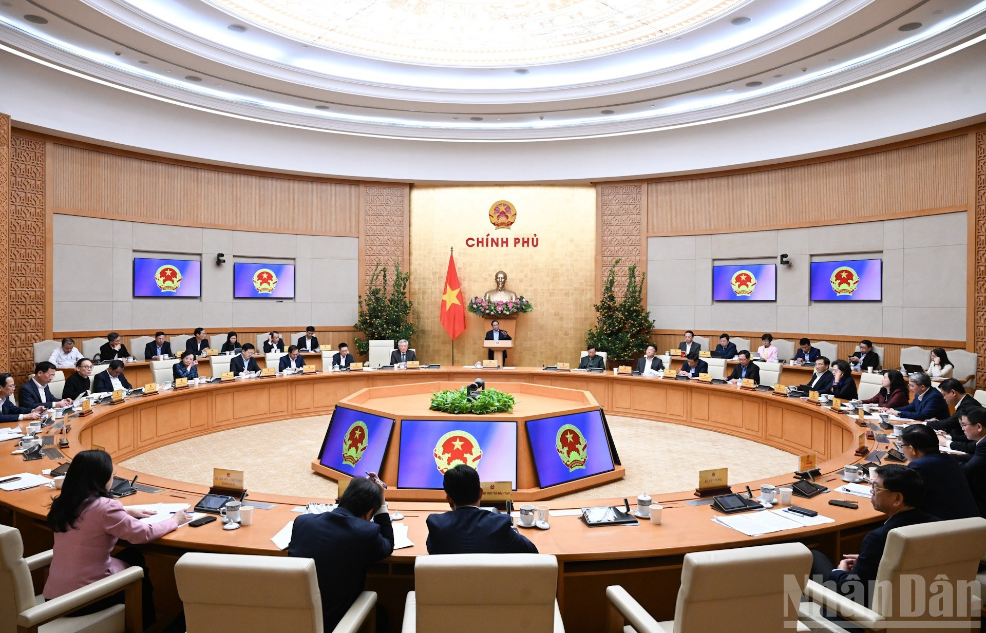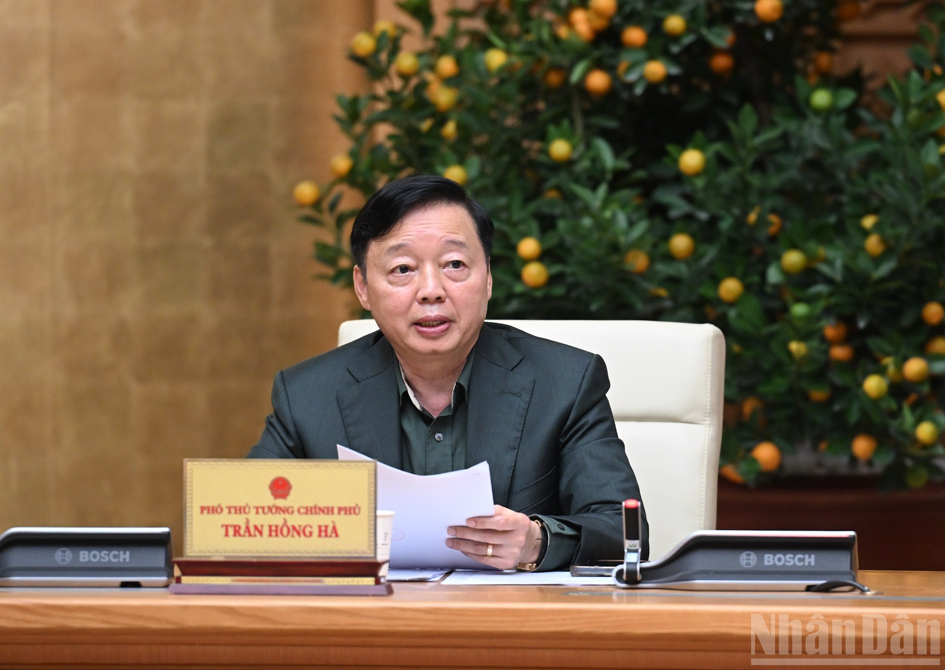 El viceprimer ministro, Tran Hong Ha, interviene en la reunión.