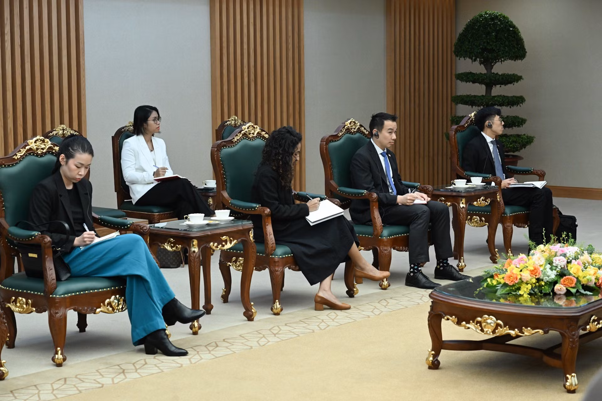Los delegados que acompañan al embajador de Singapur en Hanói, Jaya Ratnam.