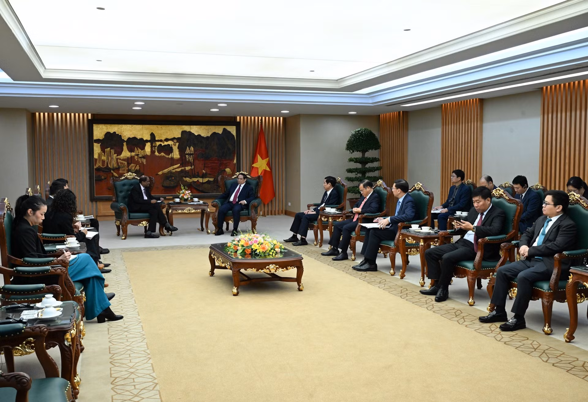 El primer ministro vietnamita, Pham Minh Chinh, recibe al embajador de Indonesia en Hanói, Denny Abdi.
