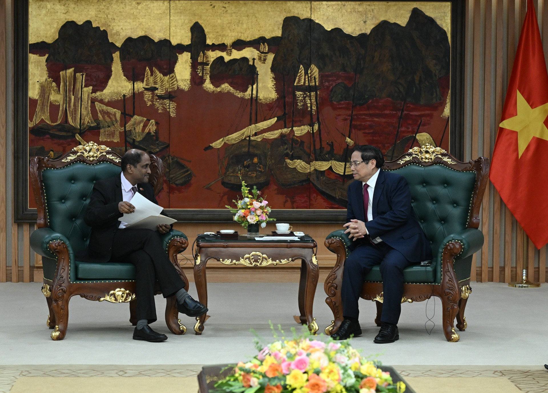 El primer ministro vietnamita, Pham Minh Chinh, recibe al embajador de Singapur en Hanói, Jaya Ratnam.