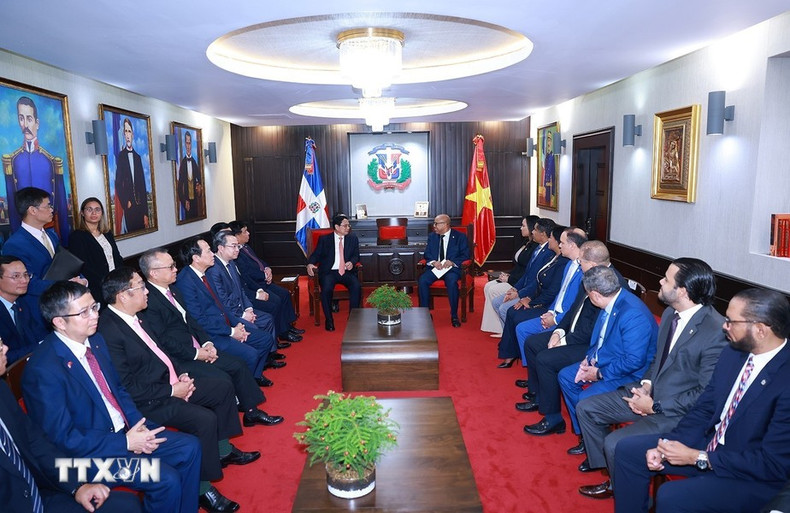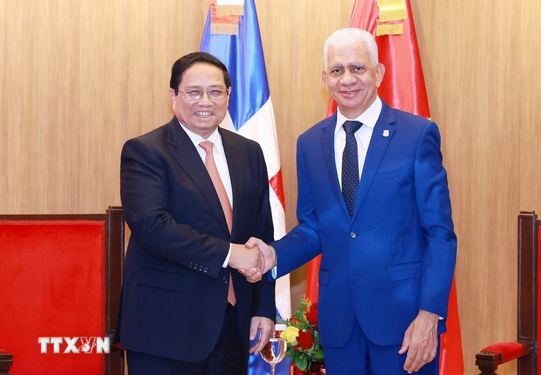 | El jefe del Gobierno vietnamita, Pham Minh Chinh, se reúne con el presidente de la Cámara de Diputados de la República Dominicana, Alfredo Pacheco. |