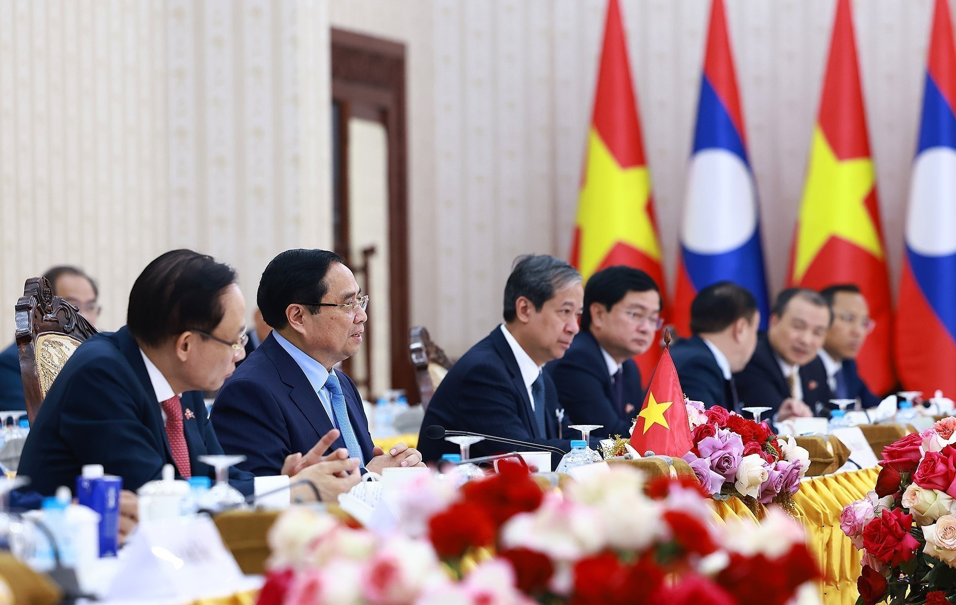 El primer ministro vietnamita, Pham Minh Chinh, se reúne con su similar de Laos, Sonexay Siphandone. (Foto: VNA)