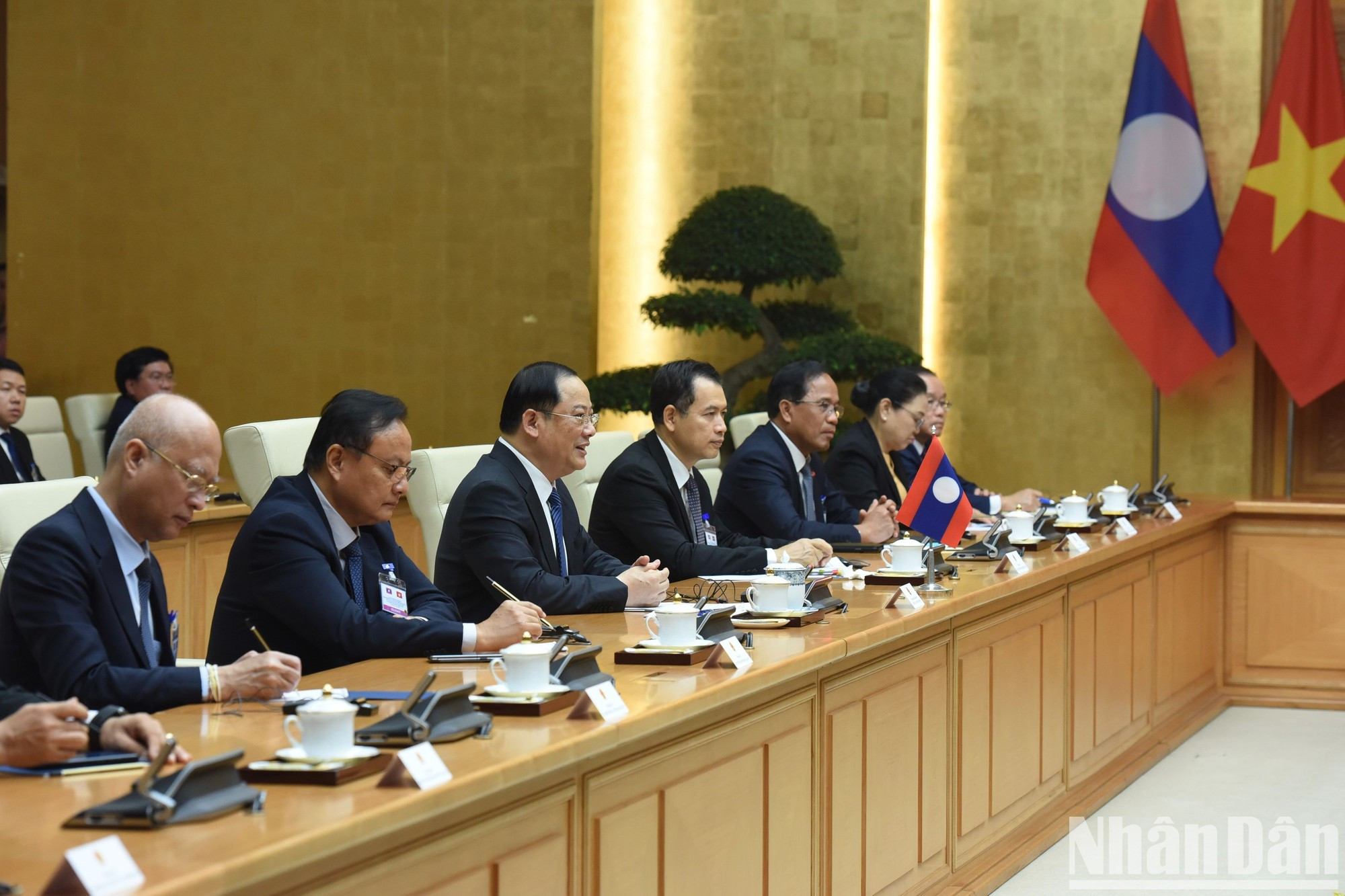 | El premier vietnamita, Pham Minh Chinh, recibe a su par laosiano, Sonexay Siphandone. |