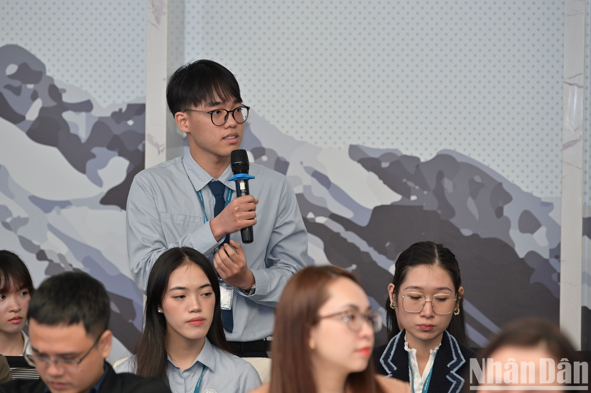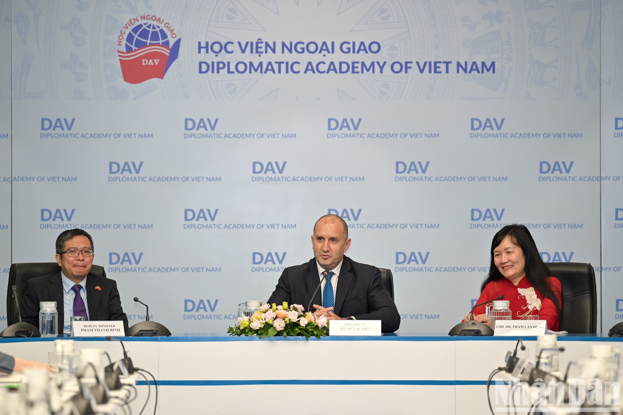 | El presidente búlgaro dialoga con profesores y estudiantes de la Academia Diplomática de Vietnam. |