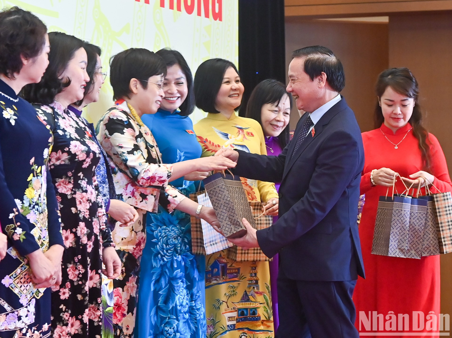 | El titular de la ANV, Tran Thanh Man, felicita a las mujeres parlamentarias en ocasión del 8 de marzo. |