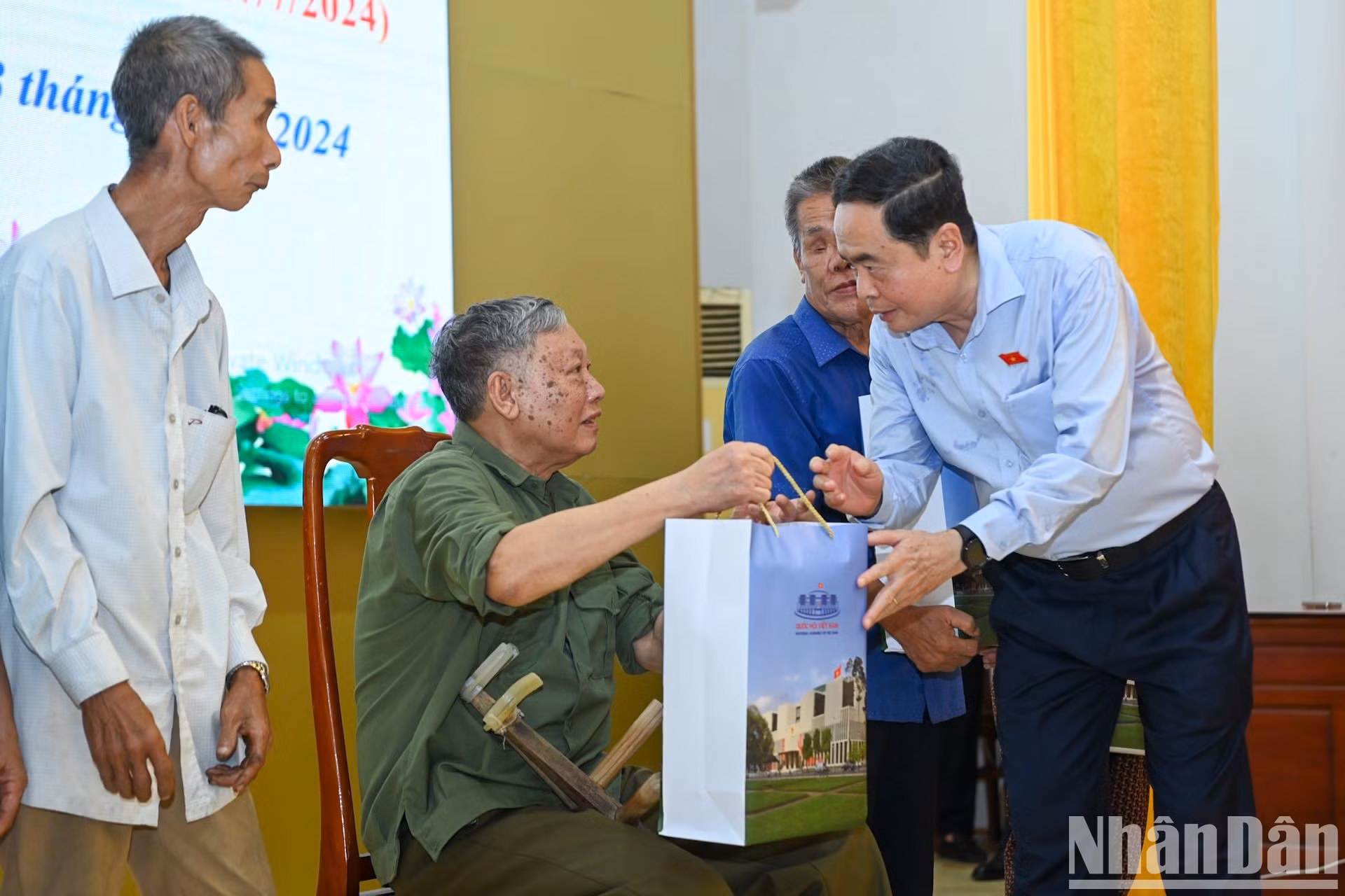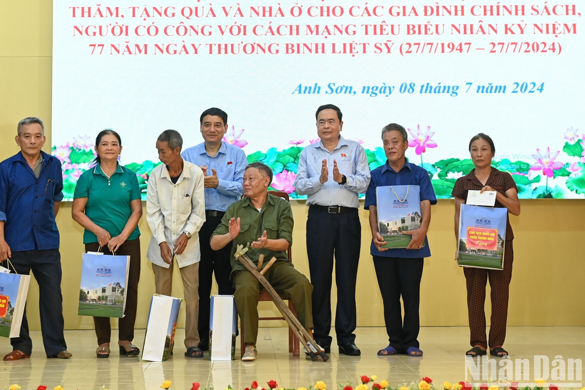 | El mismo día, el presidente de la Asamblea Nacional, Tran Thanh Man, visita y entrega obsequios y casas a familias beneficiarias de políticas sociales y personas con servicios meritorios a la revolución en el distrito de Anh Son. |