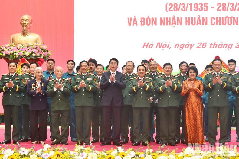 | El presidente Luong Cuong entrega la Orden Ho Chi Minh a la fuerza de milicia. |