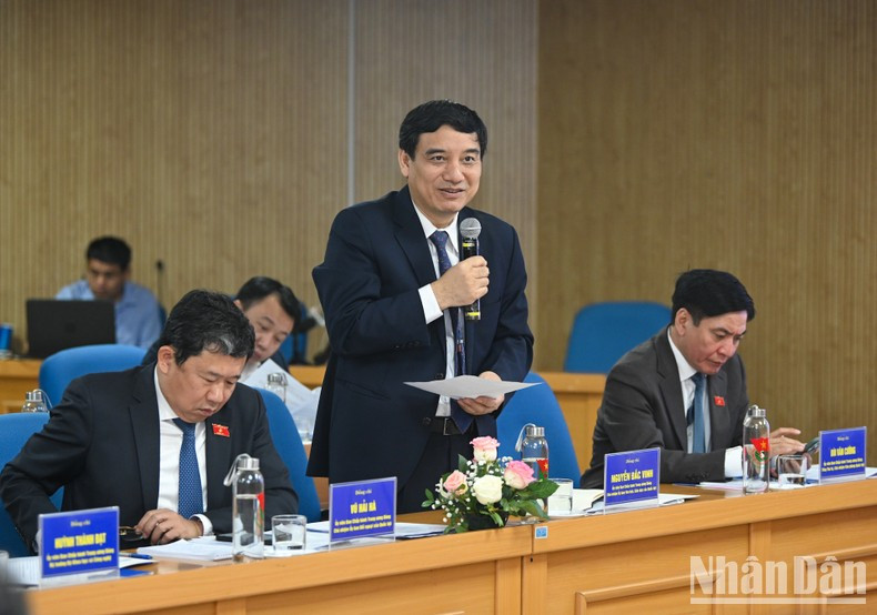 |   El secretario general y jefe de la Oficina de la Asamblea Nacional Bui Van Cuong interviene en el encuentro.  |
