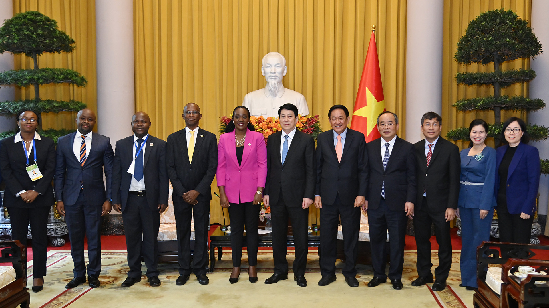 | El presidente vietnamita, Luong Cuong recibe a la ministra de Defensa de Kenia, Soipan Tuya. |