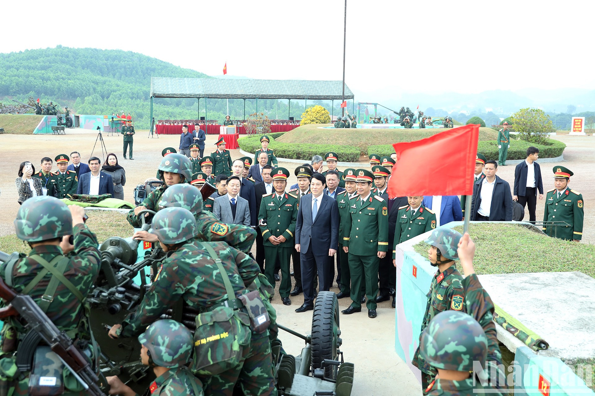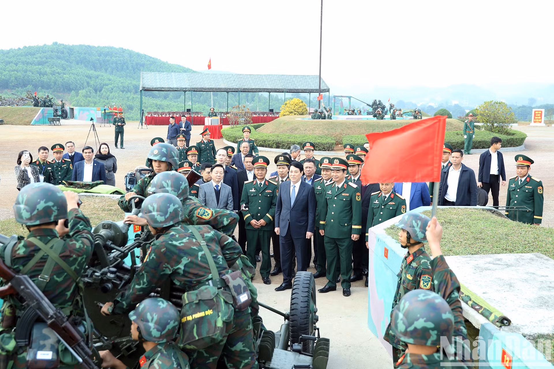 | El presidente Luong Cuong chequea la labor de entrenamiento de los soldados. |