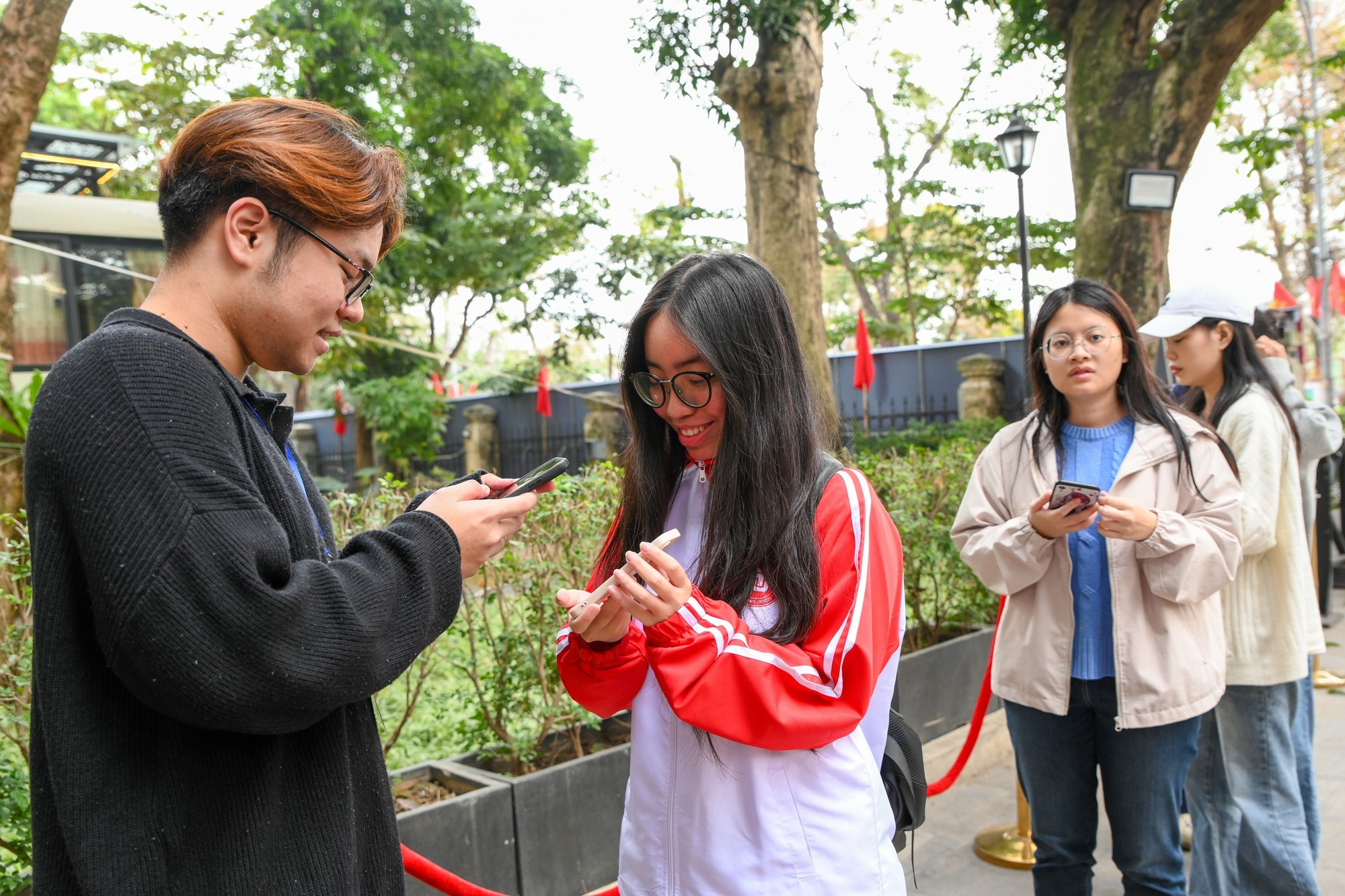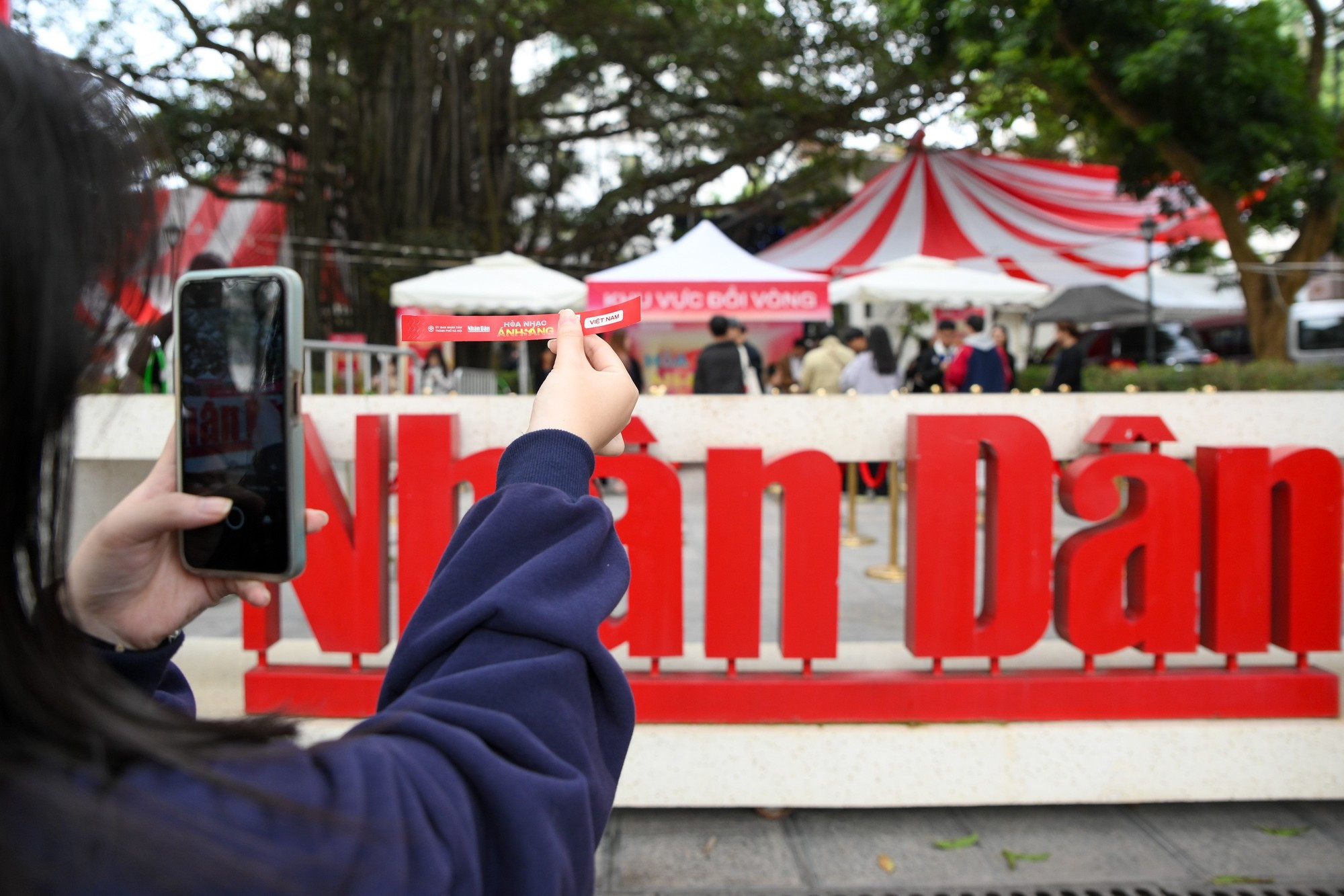 Una gran multitud se reunió hoy desde temprano en la sede del periódico Nhan Dan (Pueblo) para conseguir entradas gratuitas del programa “Concierto de la Luz- Bienvenida al Año Nuevo 2026, bajo el tema “Vibrant Light – Luz vibrante”.