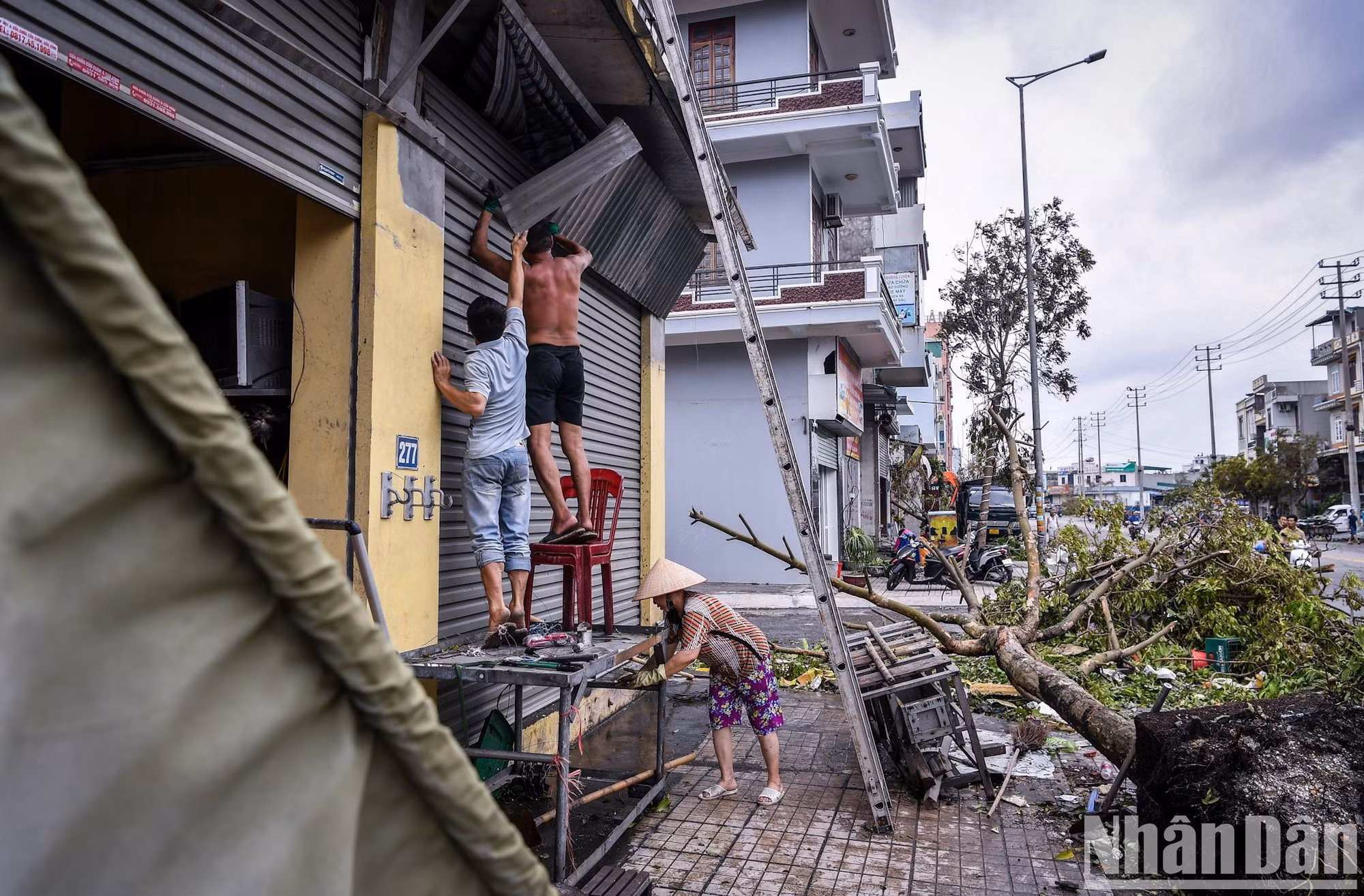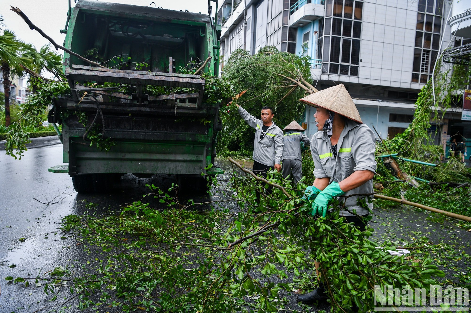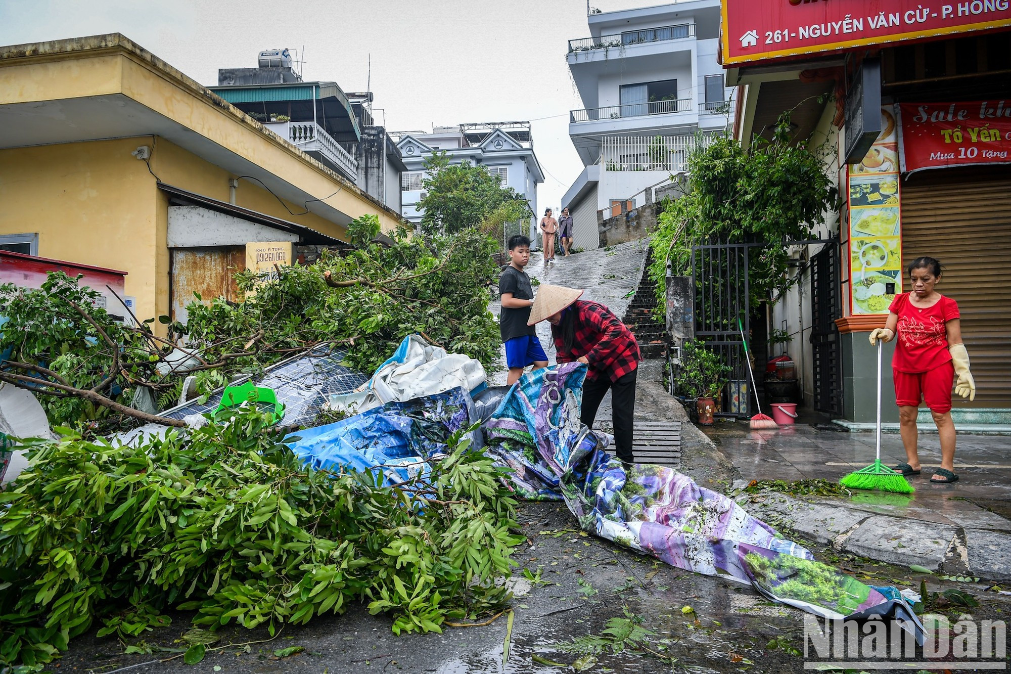 | Muchos árboles en las calles de Ha Long fueron derribados por la tormenta. |