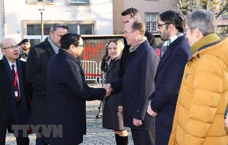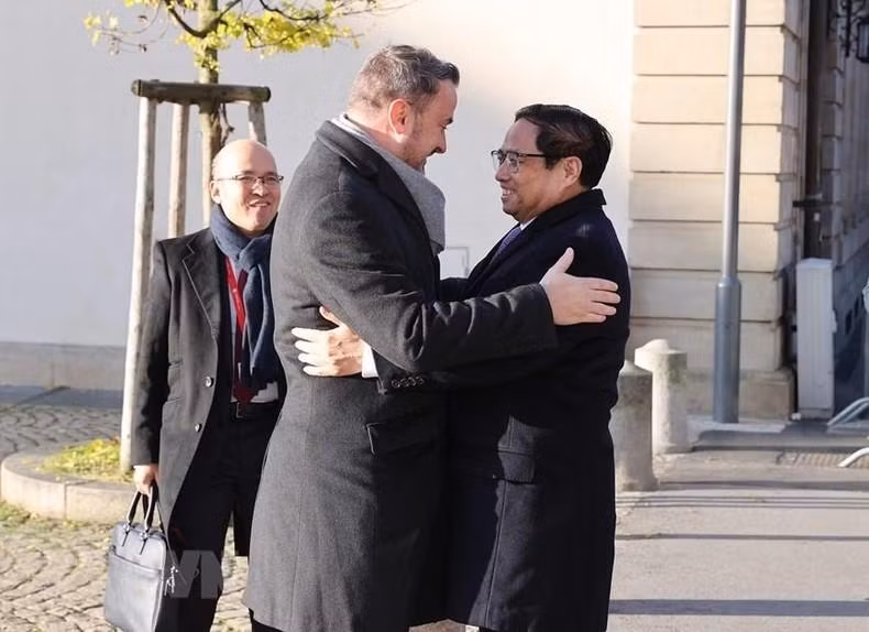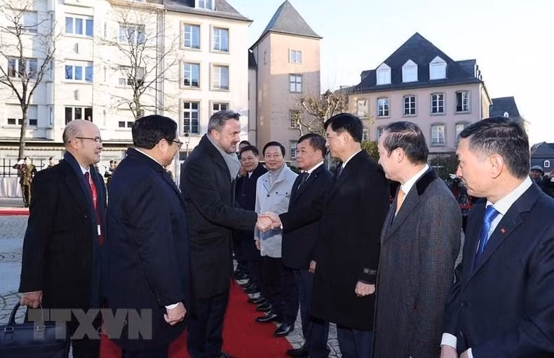| El primer ministro de Luxemburgo, Xavier Bettel (izquierda), recibe a su par vietnamita. |