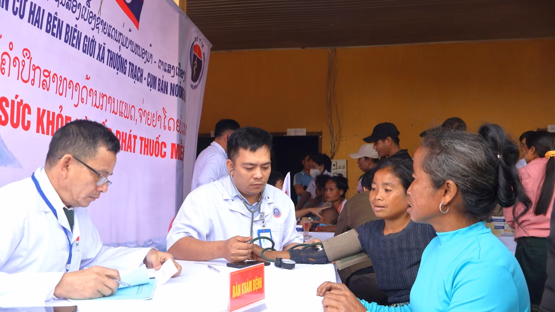 | La Guardia Fronteriza de Quang Binh y el Hospital General del distrito de Bo Trach ofrecen exámenes médicos gratuitos a los habitantes de Noong Ma. |