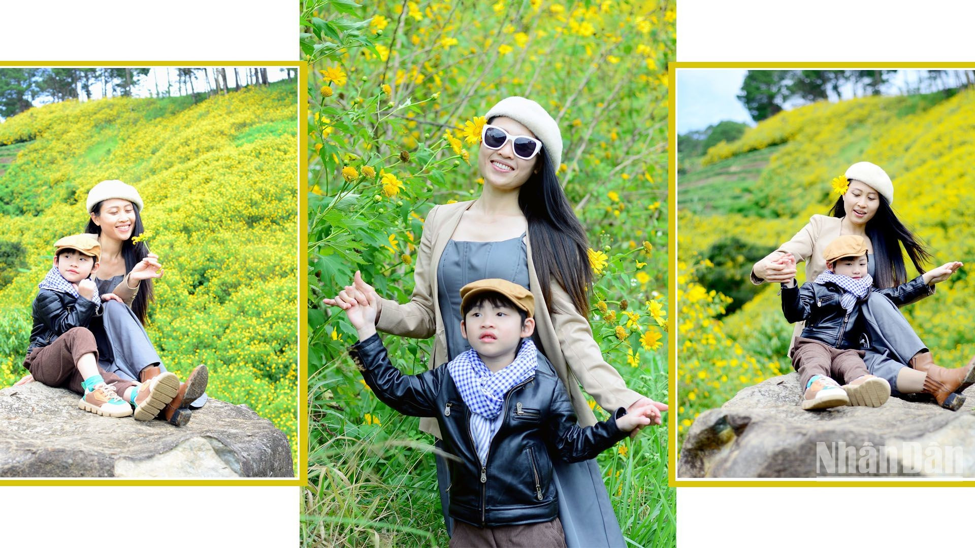 | Después de "dormir" durante un año sin que nadie se diera cuenta, cuando el tiempo se vuelve frío y el sol brilla suavemente, los girasoles silvestres tiñen de amarillo las carreteras y laderas de las Tierras Altas Centrales. El valle al pie de la montaña Voi, en el distrito de Duc Trong, es como un rompecabezas con piezas de colores. |