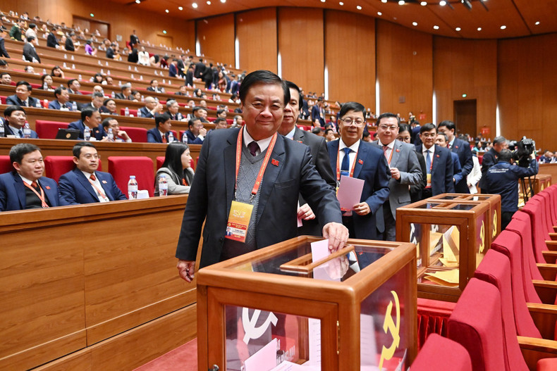 El secretario general del PCV, To Lam, y el presidente Luong Cuong emiten sus votos para elegir a los miembros titulares y suplentes del Comité Central del PCV del XIV mandato.