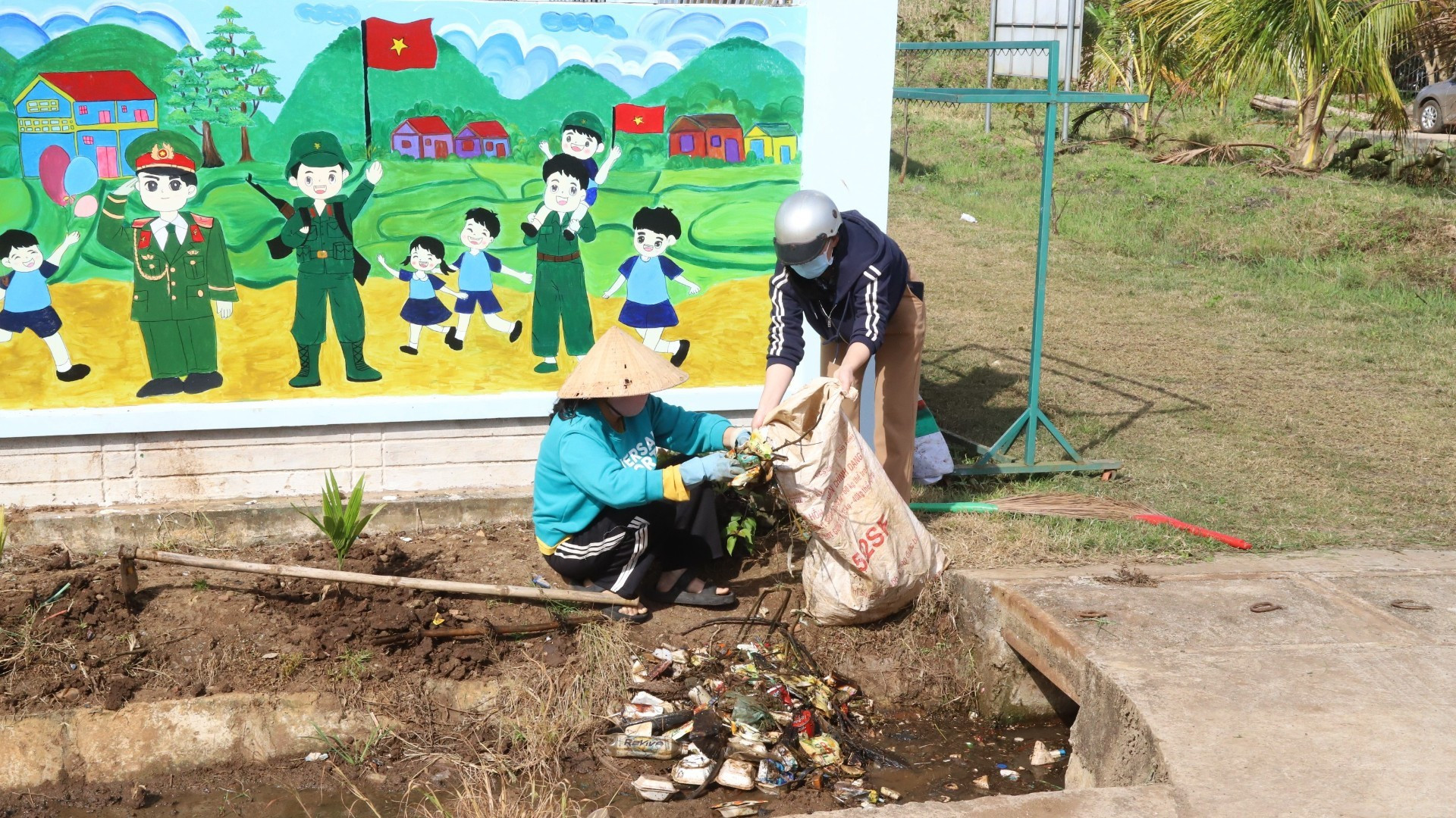 Los cuadros y pobladores del grupo residencial 3, barrio Cu Bao realizan labores de saneamiento ambiental en saludo al XIV Congreso del Partido.