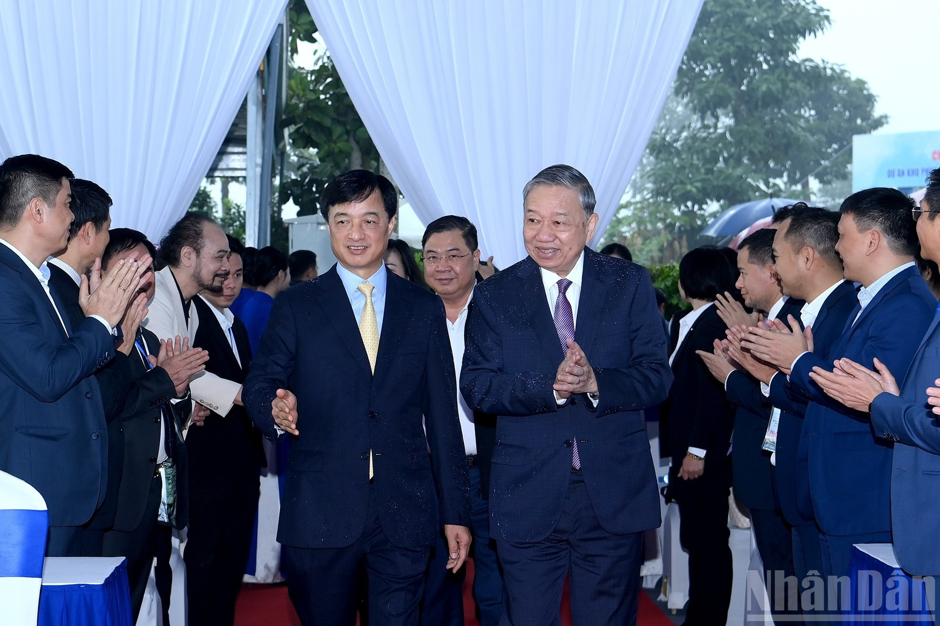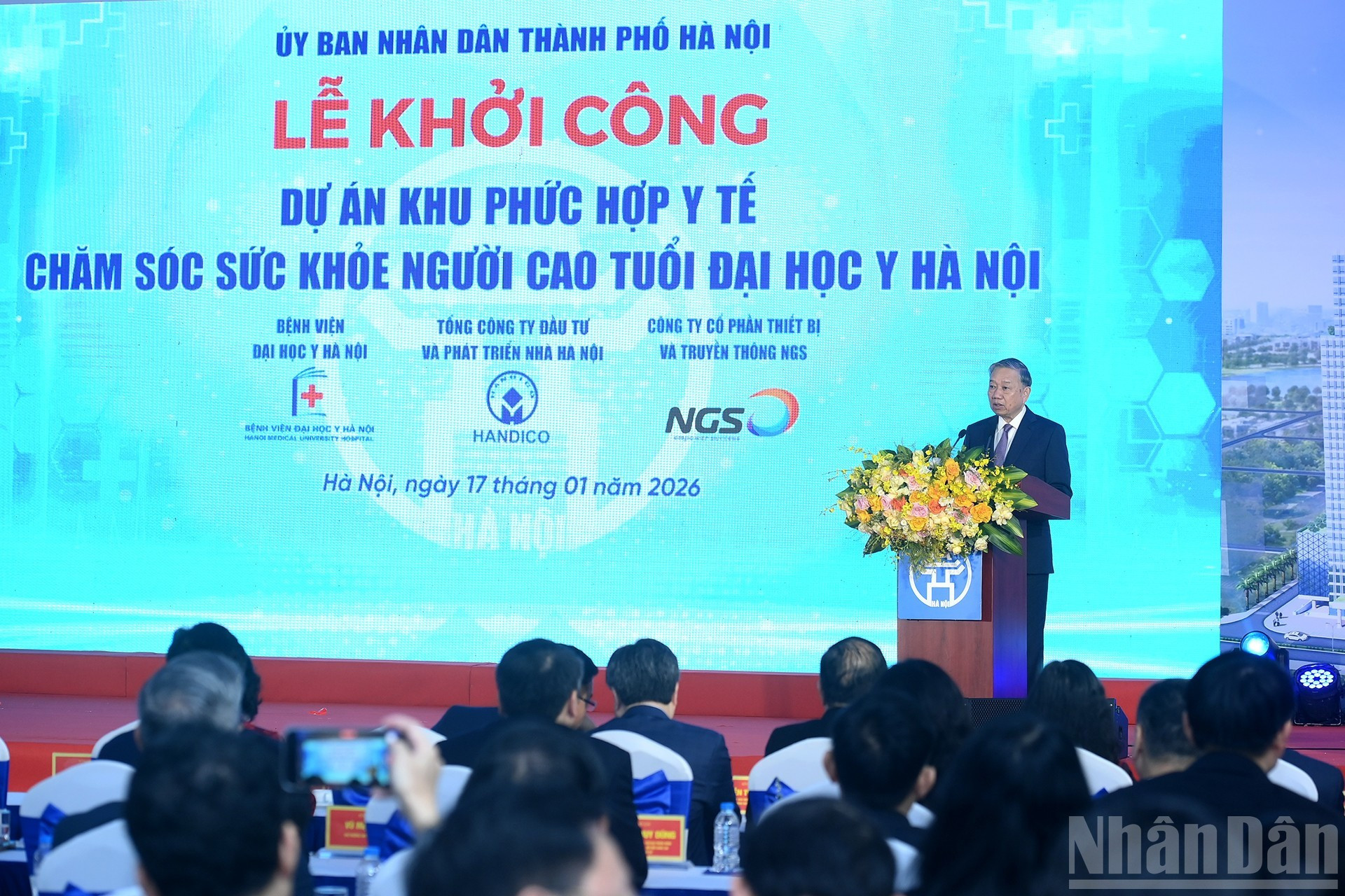 El secretario general del PCV, To Lam, y los delegados realizan la ceremonia de inicio de la obra.