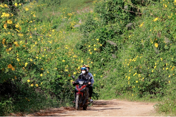 En el camino a la provincia de Dien Bien, los girasoles silvestres crecen en los distritos de Muong Ang – Tuan Giao, Dien Bien Dong y Muong Nhe.