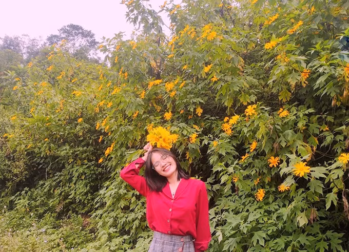 Desde principios de noviembre, con el clima frío, los girasoles silvestres florecen y brillan en las montañas y colinas de Dien Bien.