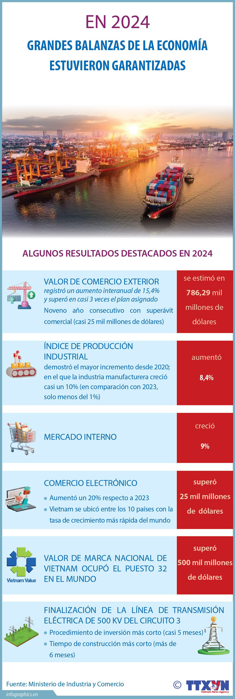 En 2024, el valor de comercio exterior de Vietnam alcanzó los 786,29 mil millones de dólares, un aumento del 15,4 por ciento en comparación con 2023, de los cuales las exportaciones crecieron un 14,3 por ciento y las importaciones un 16,7 por ciento. La balanza comercial registró un superávit de 24,77 mil millones de dólares.
