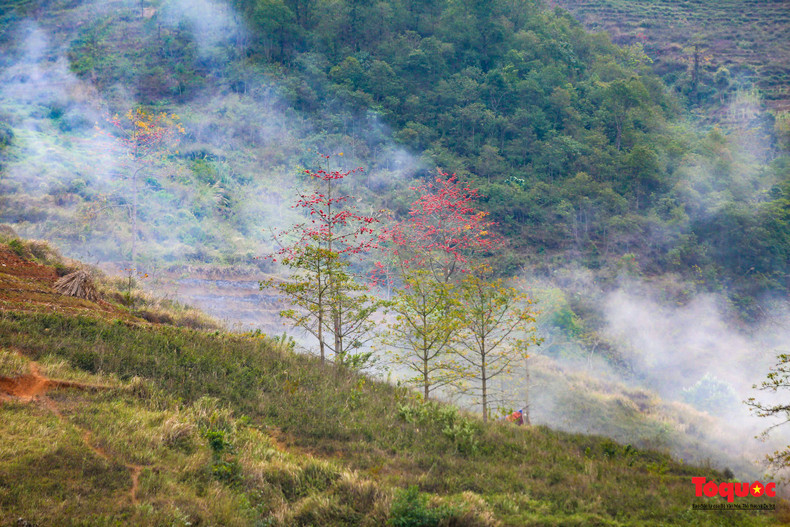 | No es difícil ver las hileras del Moc Mien encendiendo fuegos a lo largo de las aldeas en la meseta rocosa. |
