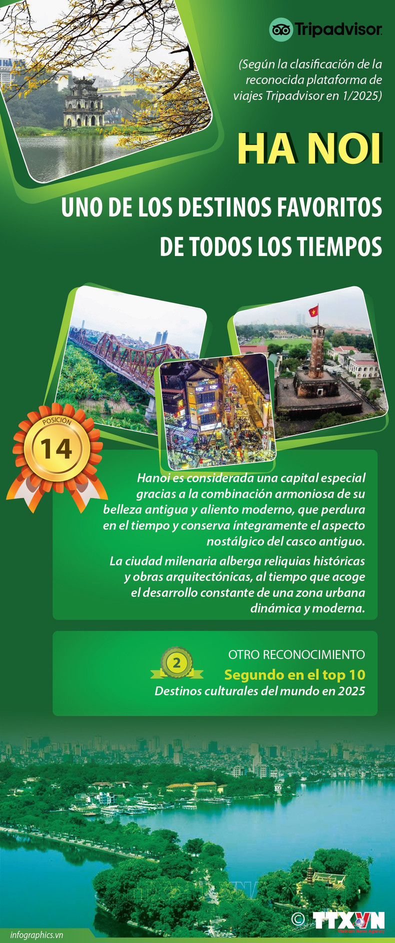 En el marco de los premios Traveler's Choice Awards Best of the Best Destinations de la reconocida plataforma online de viajes Tripadvisor, anunciados en enero de 2025, la capital vietnamita, Hanói, fue distinguida en el puesto 14 entre los 25 destinos favoritos de todos los tiempos. Además, figuró en el segundo lugar entre los principales destinos culturales del mundo.