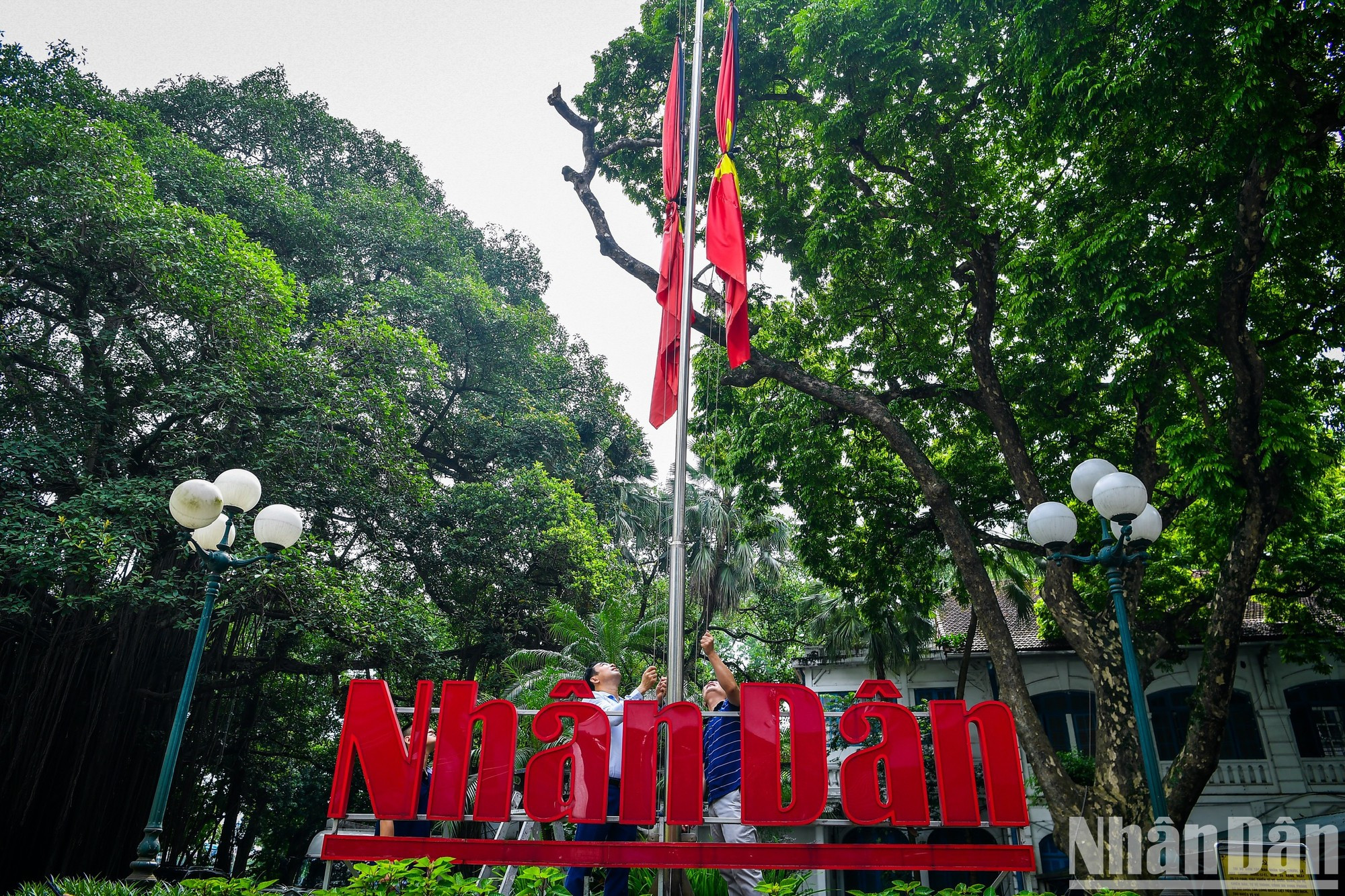 | El personal del periódico Nhan Dan lleva a cabo la ceremonia con solemnidad y esmero. |
