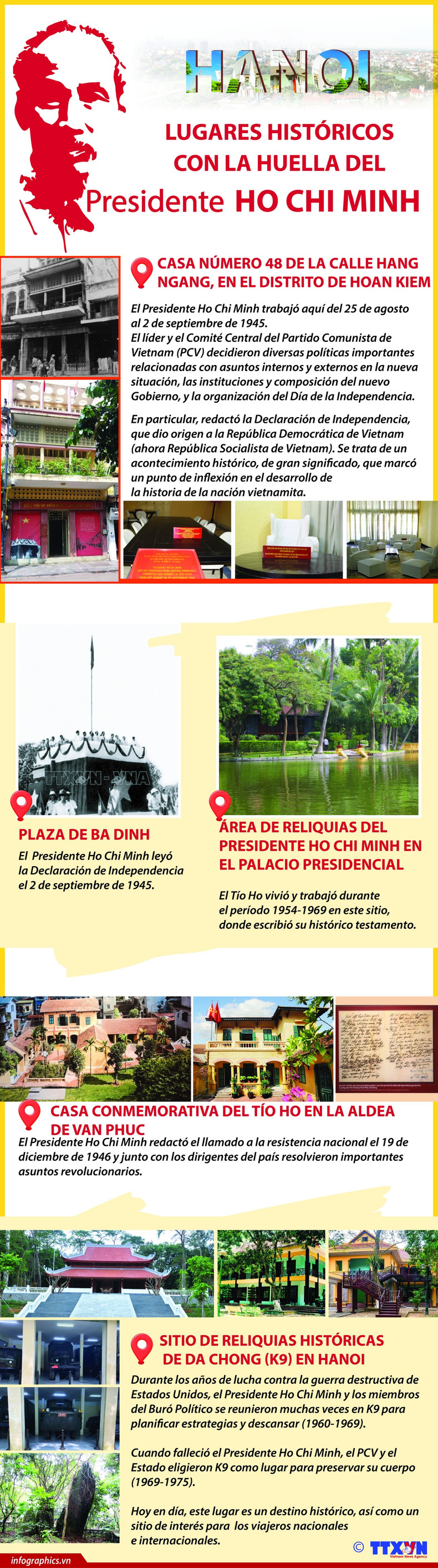 Con su ubicación geográfica y papel especial en la historia, Hanói tiene el honor y el orgullo de ser el lugar donde vivió y trabajó el Presidente Ho Chi Minh por más tiempo. La capital es también el lugar donde el querido Tío Ho escribió y proclamó obras inmortales para el pueblo vietnamita y el mundo.