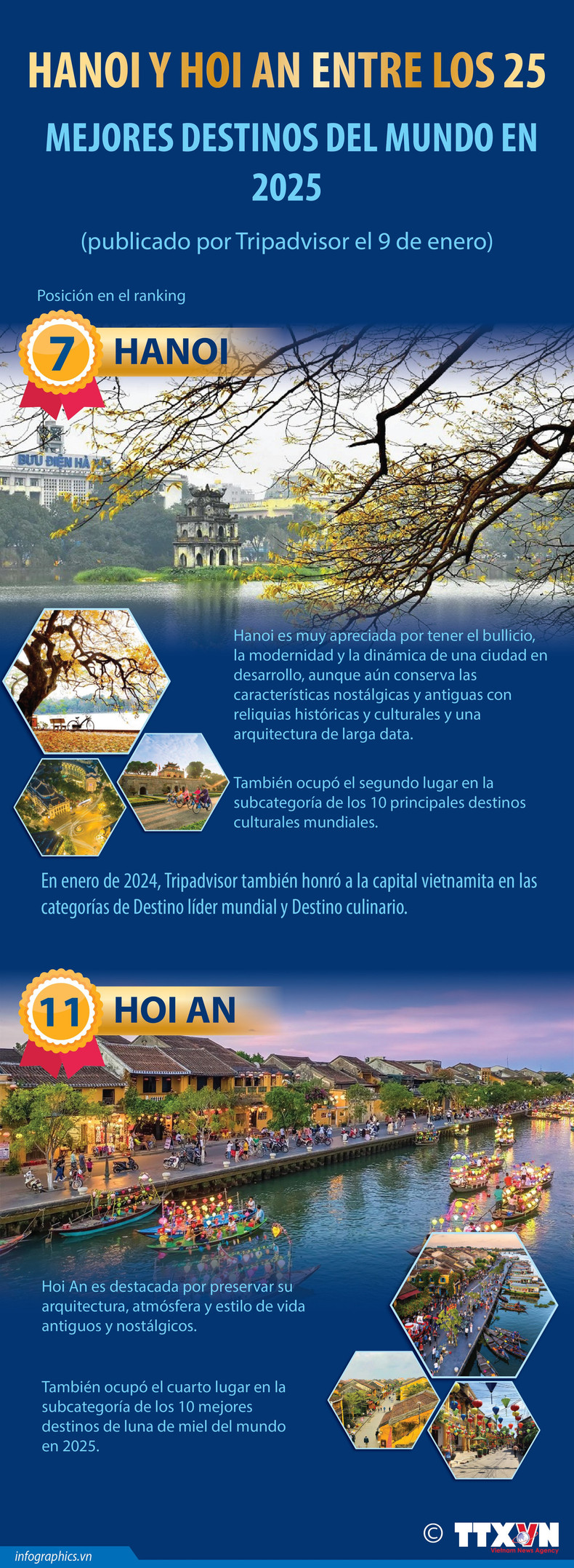 El 9 de enero de 2025, Tripadvisor reveló los 25 destinos más maravillosos del mundo, dentro de la categoría "Best of the Best" de los Travelers' Choice Awards, elegidos por sus usuarios. Vietnam tiene dos ciudades en la lista: Hanói y Hoi An.