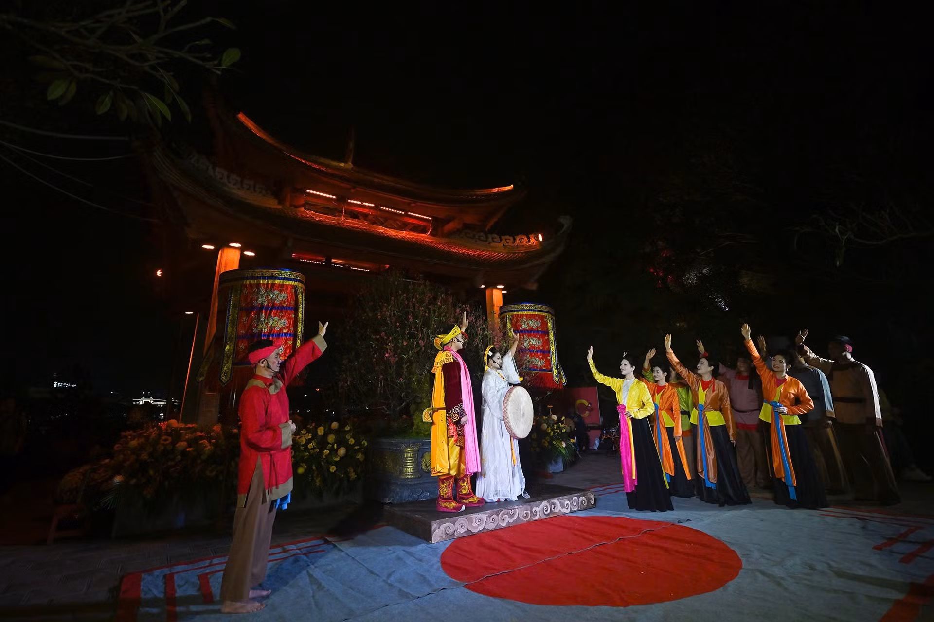 Turistas internacionales se suman a la alegría de dar la bienvenida al Tet junto al pueblo vietnamita.Los hanoyenses esperan los espectáculos pirotécnicos para dar la bienvenida al Año Nuevo Lunar.