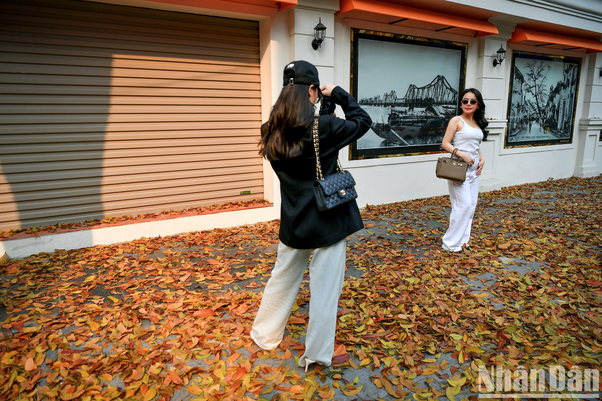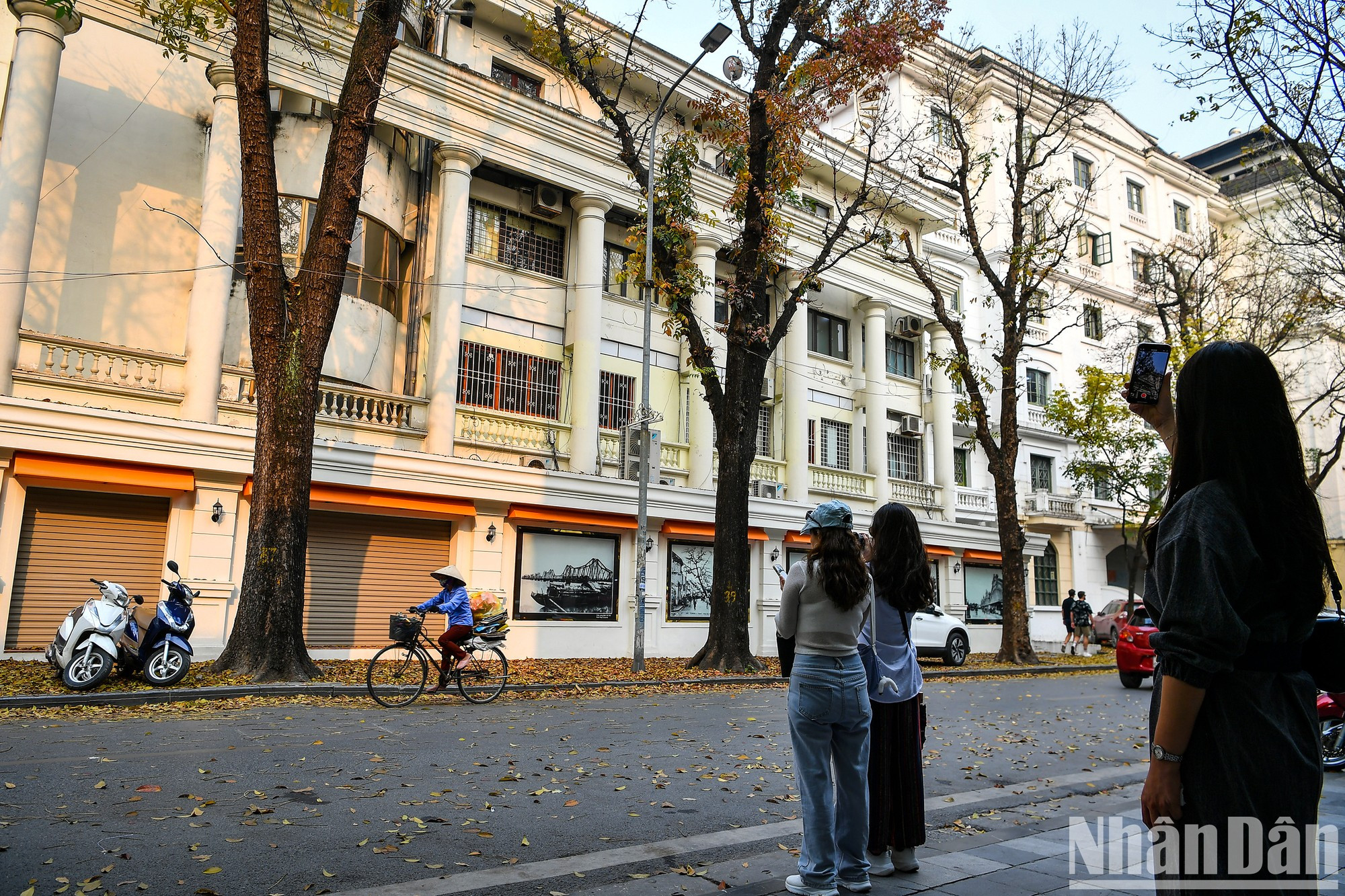 | Con su arquitectura antigua y la belleza de las hojas amarillas, la calle Hang Trong es un lugar fotogénico estos días. |