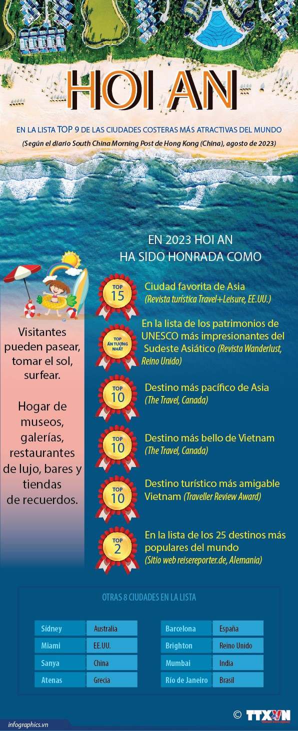 La ciudad de Hoi An, en la provincia vietnamita de Quang Nam, figura entre las nueve ciudades costeras atractivas del mundo seleccionadas por el diario South China Morning Post de Hong Kong (China).