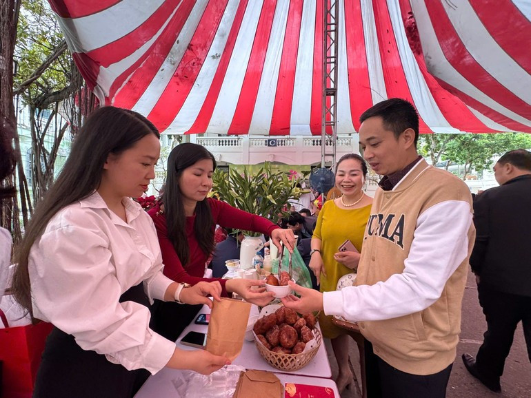 Convocado por el Sindicato de Nhan Dan, el festival abrió sus puertas a primeras horas de la mañana del 5 de marzo con una gran variedad de alimentos, bebidas, productos de cortesía de empresas socias y suvenires ideados por los propios miembros del periódico.