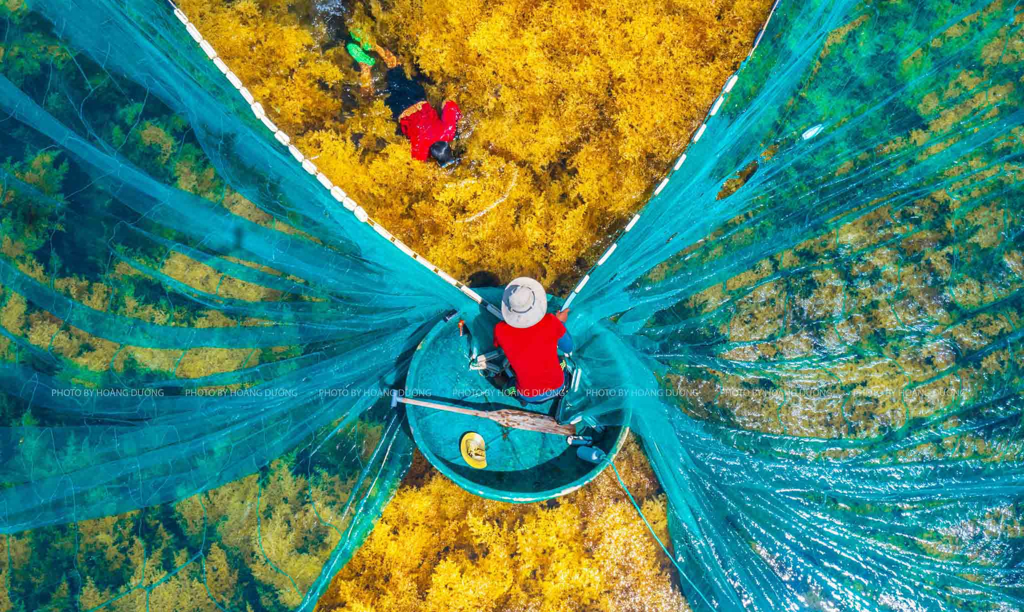 El “bosque” de sargazo tiñe de dorado el mar por Hon Kho.