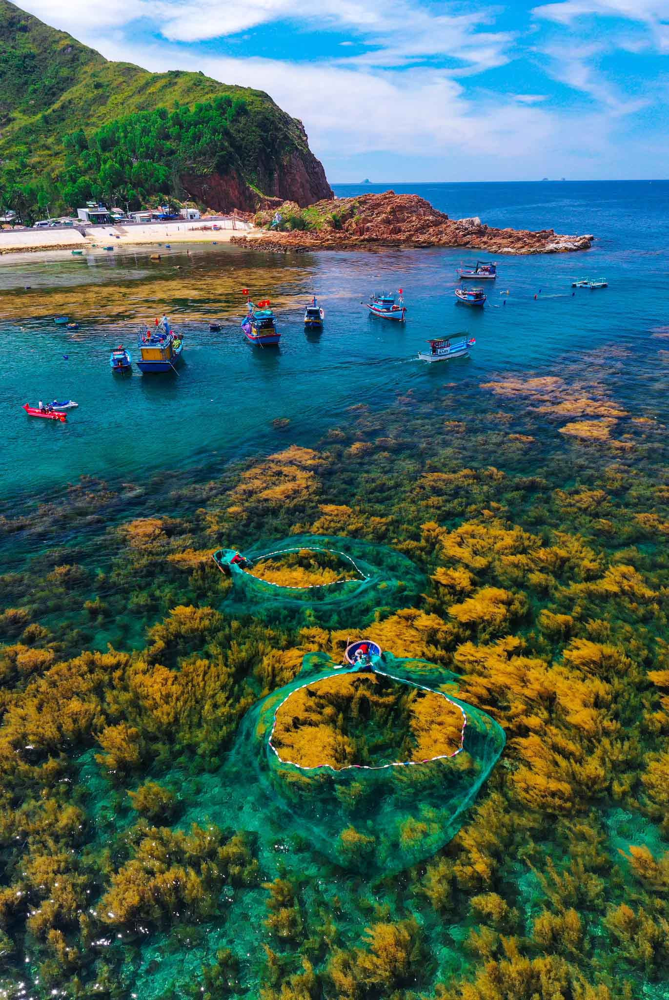 La comuna de Nhon Hai y la isla de Hon Kho (izquierda) desde arriba.
