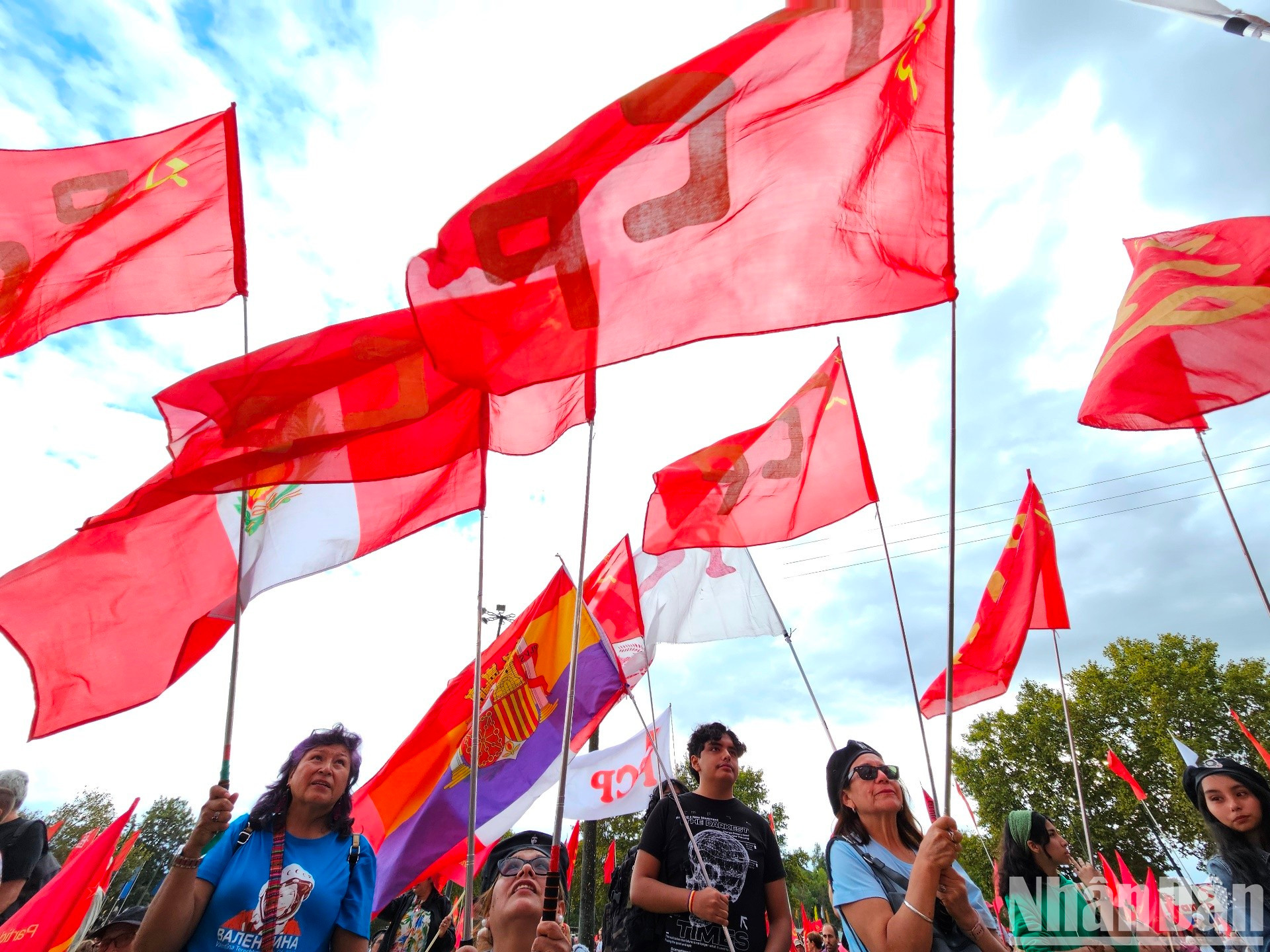 | Una de las actividades más esperadas fue una manifestación multitudinaria al final del tercer día del festival. Decenas de miles de participantes, entre locales y más de 50 delegaciones internacionales, formaron un bloque solidario y enlazaron sus brazos para entonar los himnos del Partido, La Internacional y la canción del Festival (Carvalhesa). |