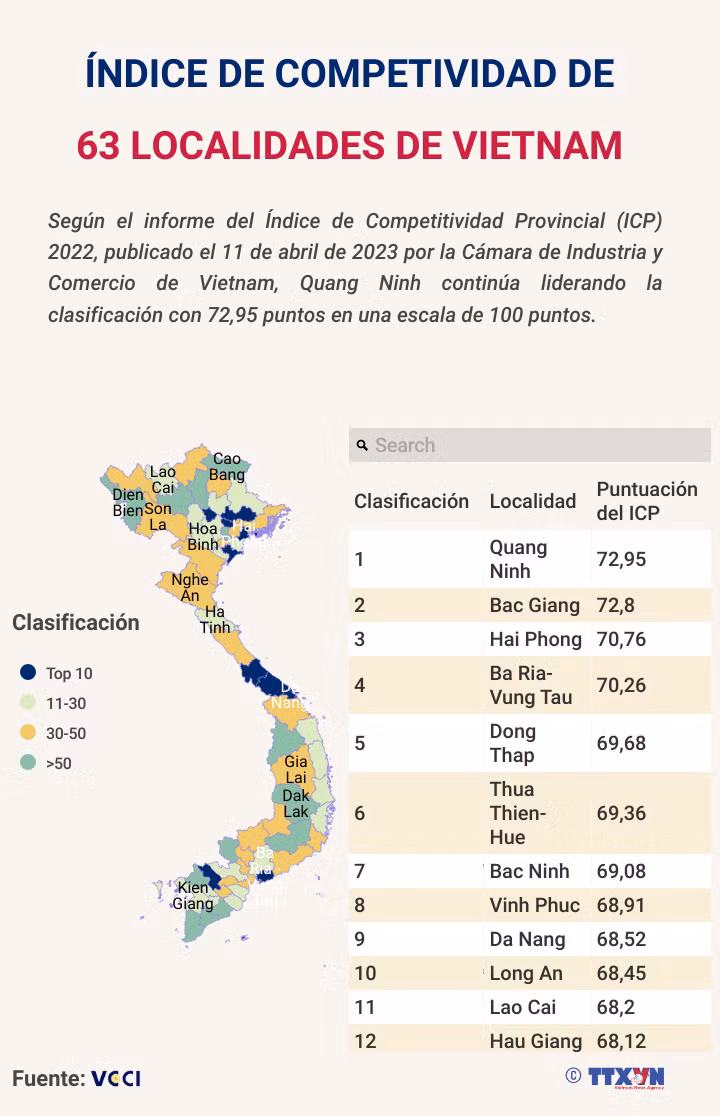 La provincia nortvietnamita de Quang Ninh continúa liderando el país en la clasificación del Índice de Competitividad Provincial (ICP), con 72,95 puntos en una escala de 100.