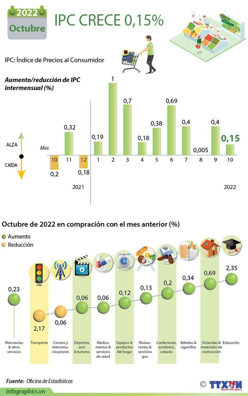 El Índice de Precios al Consumidor de Vietnam creció 0,15% en octubre.
