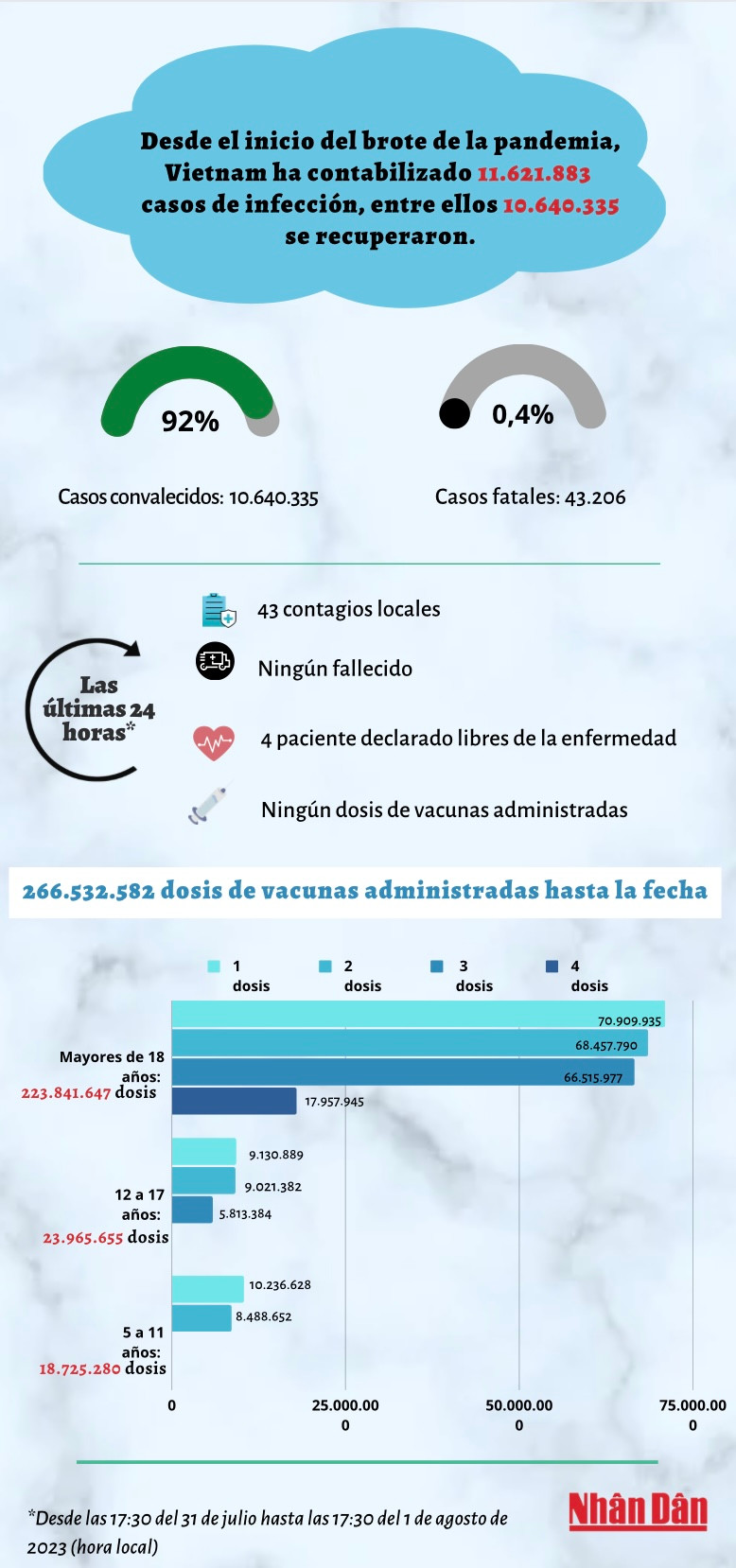 Infografía: Actualización sobre la situación del Covid-19 en Vietnam - 1 de agosto de 2023