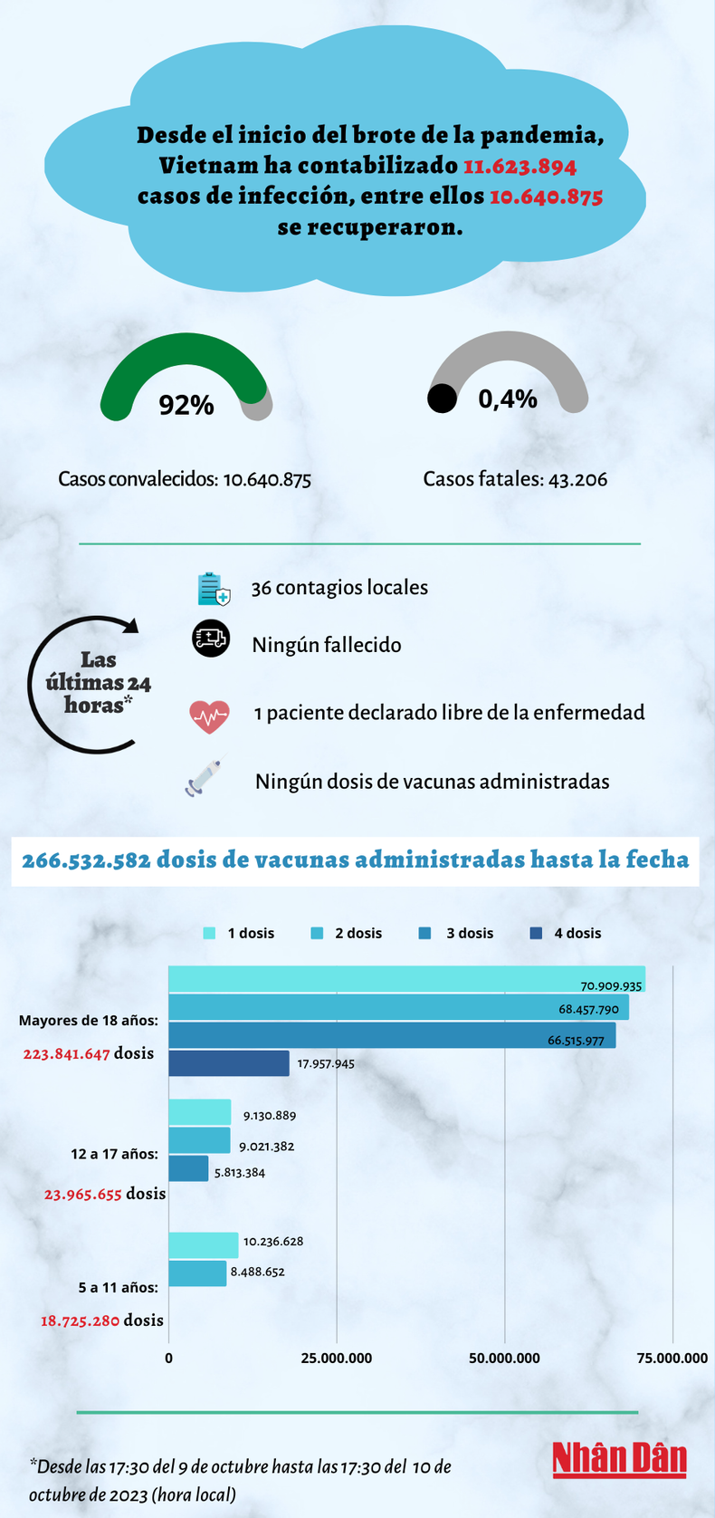 Infografía: Actualización sobre la situación del Covid-19 en Vietnam - 10 de octubre de 2023