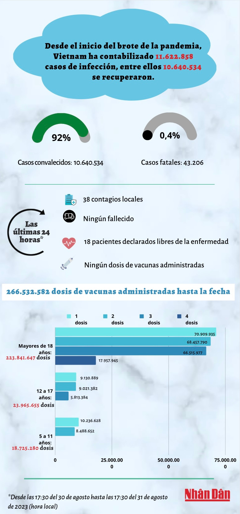 Infografía: Actualización sobre la situación del Covid-19 en Vietnam - 31 de agosto de 2023