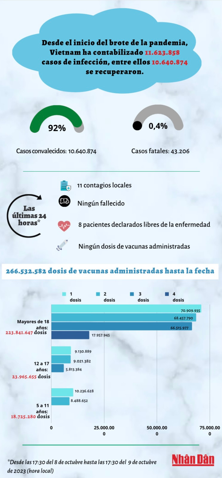Infografía: Actualización sobre la situación del Covid-19 en Vietnam - 9 de octubre de 2023