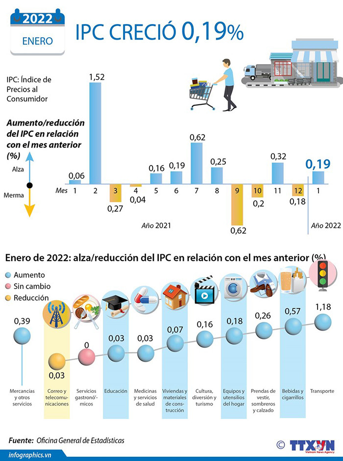 Infografía: Índice de Precios al Consumidor creció 0,19 por ciento en enero Vietnam