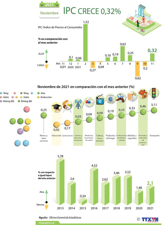 Infografía: Índice de Precios al Consumidor en Vietnam crece 0,32 por ciento en noviembre
