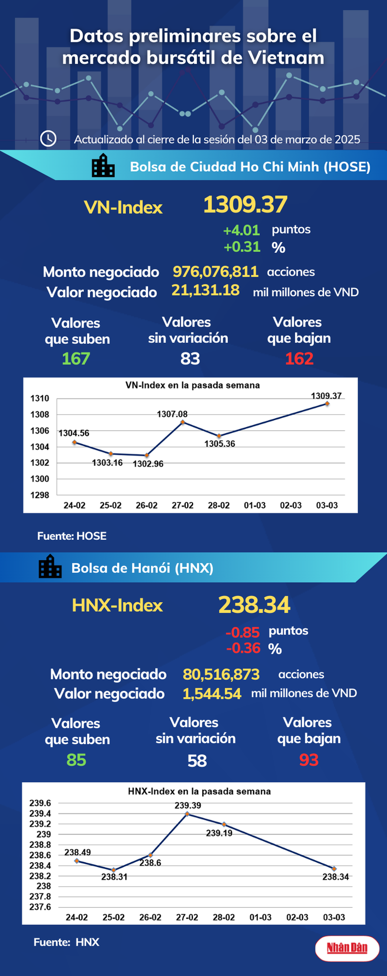 Infografía: Mercado bursátil de Vietnam - 03 de marzo de 2025