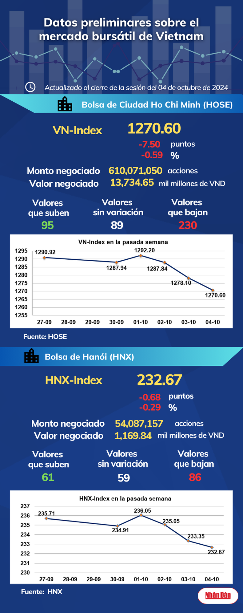 Infografía: Mercado bursátil de Vietnam - 04 de octubre de 2024