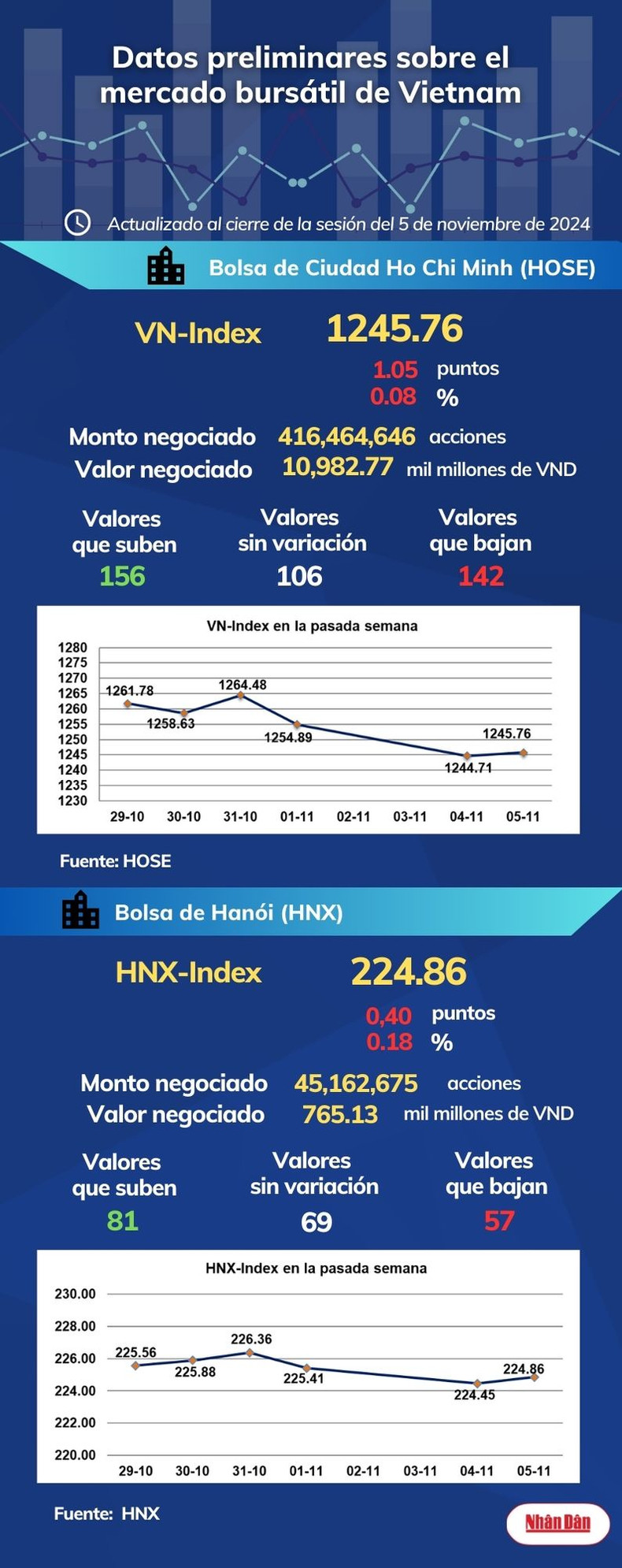 Infografía: Mercado bursátil de Vietnam - 05 de noviembre de 2024