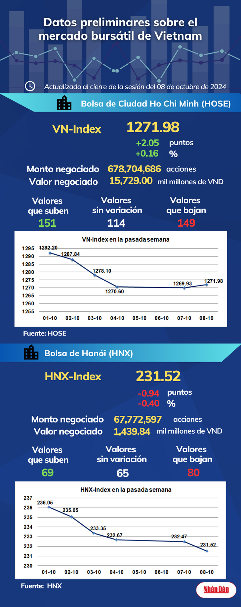 Infografía: Mercado bursátil de Vietnam - 08 de octubre de 2024
