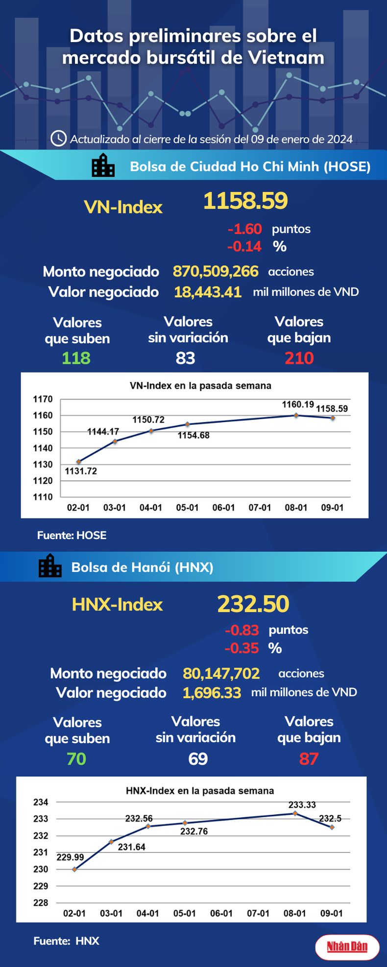 Infografía: Mercado bursátil de Vietnam - 09 de enero de 2024
